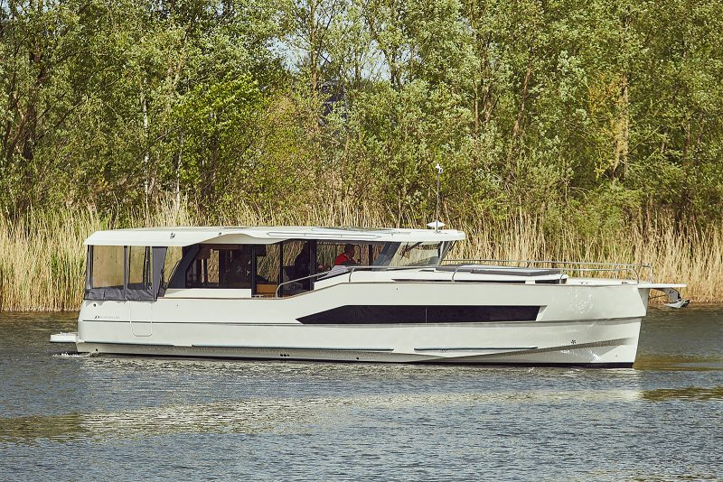 Jednostka wyróżnia się nowoczesną nietypową sylwetką, doskonałym hydrodynamicznie kadłubem pozwalającym na rozwijanie znacznie większych prędkości niż spacerowa, małym zanurzeniem, ekonomicznością oraz świetną jakością wykonania. Jasne i przestronne wnętrze oferuje pełną wysokość stania w salonie i kabinach, 2 wygodne łazienki lub jedną łazienkę i garderobę oraz w pełni wyposażoną kuchnię. Komfort na zewnątrz zapewniają: duży funkcjonalny kokpit rufowy z wieloma miejscami do siedzenia, stołem i wyjściem na platformę rufową, mały kokpit dziobowy z wyjściem przez dziób, pokład słoneczny na dachu z miejscem do opalania się oraz opcjonalnym, dodatkowym stanowiskiem sterowym, tzw. flybridge.