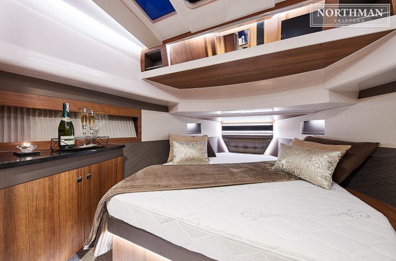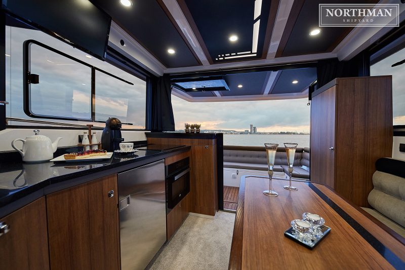Luksusowy charakter jednostki podkreślają zastosowane przy tworzeniu innowacje technologiczne oraz szeroki wachlarz możliwości wyposażenia. Northman 1200 został zaprojektowany jako jacht gwarantujący ponadprzeciętną wygodę użytkowania. Mesa jachtu zapewnia bardzo dużo naturalnego światła, przy tym funkcjonalna kuchnia oraz stół jadalny z komfortową strefą wypoczynkową. Do wyboru są dwie wersje: standardowa z pokładem słonecznym lub Flybridge oferującym możliwość podziwiania wspaniałych widoków. Flybridge może być opcjonalnie wyposażony w demontowany stolik, materace słoneczne, lodówkę czy dodatkowy ploter.